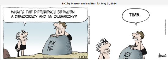 Is a "democracy" that's for sale still a democracy, or is it something else? The question arises from the nature of our political system, whatever you wish to call it: it is an auction for political favors / influence in which the highest bidder wins--as in any auction. "The will of the people" is a useful artifice. Those who collect the largest war chests of cash win elections because they buy visibility via marketing and adverts--just like selling detergent or "the latest innovation." The belief at the bottom of this debased version of "democracy" is that everyone scrambling to maximize their own interests in a free-for-all of advocacy magically generates policies that serve the common good. In other words, if everyone jostling for power gets their slice of federal largesse, then that is identical to serving the common good. But this is false: a state that is nothing more than a highest-bidder-wins distributor of subsidies and favors cannot possibly serve the common good, as the common good is not just the sum total of private interests. President Jimmy Carter described this succinctly: "The national interest is not always the sum of our single or special interests. We must not forget that the common good is our common interest and our individual responsibility." We have become accustomed to thinking of "democracy" as nothing more than self-interested hogs jostling at the feeding trough of federal favors and largesse. In an oligarchy masquerading as a "democracy," this distribution reflects 1) the need to avoid inequalities extreme enough to trigger revolt and 2) the need to cloak the fact that the vast majority of political influence is "owned" (bought and paid for) by the top 0.1%. So the bottom 40% get their share of subsidies, the middle class gets its share of subsidies, the top 10% get their share of subsidies and then the top 0.1% retain the real power and wealth to serve their own interests. In a functional democracy--as opposed to a hogs-at-the-trough auction of favors--the social order is an interconnected ecosystem of: 1) the social contract, 2) civic virtue, 3) shared purpose, 4) shared sacrifice, 5) moral legitimacy, 6) social trust, 7) membership, and 8) social cohesion, the glue that binds society in times of hardship or crisis. Absent social cohesion, society disintegrates. The social contract is the set of implicit expectations and obligations people consider their birthright. Civic virtues are the set of standards that serve both private interests and the common good: agency, accountability, integrity, transparency, civic duty, honor, and simplicity, which includes being disciplined, generous, forthright and frugal. Shared purpose includes national purpose. Pursuing shared purpose demands sacrifice and the sublimation of private gain. Shared sacrifice is the distribution of necessary sacrifices across the entire spectrum of the social order, from the highest to the humblest. To contribute is to be valued, and this is the core of social cohesion. Moral legitimacy is akin to what the Chinese call the Mandate of Heaven: Heaven and Earth are bound in a moral universe, and when society's leaders forfeit civic virtues in favor of debauchery and private gain, moral legitimacy dissolves and the Mandate of Heaven is lost. Social Trust is the sum of individuals' trust in institutions and fellow citizens to follow the social norms. When institutions fail to serve the populace by becoming sandboxes of privilege and self-service, social trust erodes. Membership is the genetically coded glue of social cohesion. When our contribution is valued, we're valued, and contributing to shared interests qualifies us for membership. Having our membership revoked--being shunned or cast out--is a painful punishment. Social cohesion is the sum of all these binding forces, the sense that contributing and belonging are worth the effort and sacrifice. If the lower classes are being sacrificed to maximize the private gains of the upper class, social cohesion is lost. The debauched, debased system we inhabit is no longer able to serve common interests or the common good. It is a dysfunctional simulation of a true democracy which must directly serve common interests by sublimating private gain to the common good. To claim that jostling for the biggest share of federal power and largesse--in a word, greed--magically serves the common good is a convenient cover for an oligarchy masquerading as a "democracy" because the peasants get to vote on which branch of the self-serving elites had the most effective ad campaign this time around. This artifice eventually wears thin because the glorification of self-interest erodes social cohesion and moral legitimacy. The awakening from our greed-induced trance will be, well, as interesting as it is inevitable.