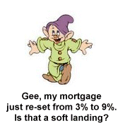 ** * * * * * * * * * * * * * * * * * * This ad (and no, it is not a parody) reveals the complete abandonment of lending standards which has fueled the housing boom. As the flyer clearly states, It's almost impossible not to qualify. The ability of subprime borrowers to get a mortgage of $300,000 for less than $1,000 a month (not much more than the take-home pay of a minimum wage worker in California) with no down payment had the obvious effect of flooding the market with ready buyers. Classic economics predicts the result: when demand exceeds supply, prices rise. The ability to get a mortgage with no down payment created a new class of real estate investor/gambler. The siren song of rapid appreciation attracted many "investors"--about 40% of all new home purchases have been "second homes" or "vacation properties"--who were able to buy their second, third, fourth or fifth house with no money down. ("Flippers" may once again refer to someone flipping burgers rather than "investment properties," as the real estate flipper becomes the burger flipper.)