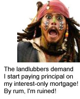 With Lebanon in flames, Israel under relentless missile attack, commuter trains bombed in Bombay, Iran's naked ambition for nuclear weapons finally reaching the airless heights of the U.N. Security Council for another round of flailing inaction, and oil nearing $80/barrel--it's difficult not to sense a whiff of Apocalypse in the air. The financial punditry are saying ho hum, another Mideast crisis, no big deal; the stock market ignores Mideast crises, so what do we really care? Unless, of course, oil is involved. Then all bets are off. Those of us with long memories recall that the last two great recessions just happened to occur right after open warfare in the Mideast (the 1973 Yom Kippur War) or the Iranians launching a crisis (the American hostages, 1980). Hmm...isn't there basically an open war between Hezbollah (proxies of Syria and Iran) and Israel going on right now? And aren't the Iranians staging another crisis with their transparent plans to enrich uranium to weapons-grade levels? (And their equally transparent strategy of stalling the West with phony "negotiations" until the bombs are in hand, or placed on top of North Korean-designed missiles capable of reaching Tel Aviv or, say, Rome?) And something else is different this time: the global economy is balanced on a tottering house of cards: costly oil (currently $78, up from $17 in 2001), a deflating housing bubble, a veritable mountain of debt, and a tightening of global money. Could a whiff of apocalypse bring the global house of financial cards down? As noted here before (Are We Poised on the Precipice of Another Age of Turmoil?), the Kondratieff cycle suggests a global recession/depression will begin soon and bottom around 2011 or 2012. The current conflicts (and the precariousness of oil supplies) certainly provide the backdrop for such a cycle of decline and debt repudiation. Before accepting the pundits' warm assurances that the stock market is going to be just peachy, perhaps you should first ask these questions: Why would Iran relinquish its quest for nuclear weapons now, when it's so close to acheiving that wondrous goal? Pakistan, after all, got away with it; why not Iran? Pundits claim Iran would give up nuclear ambitions for a trade pact (or equivalent); oh really? Give up the most important geopolitical leverage on the planet for a lousy trade agreement? Don't hold your breath. Why would Israel sit idly by until Iran gets the Bomb, after Iran has openly announced its desire to nuke Israel? If you were in the Israelis' shoes, would you cavalierly dismiss the statements of Iran's president as mere "playing to the crowd"? What if you're wrong, and he's serious? Wouldn't it be safer to risk a conventional war with Iran now rather than risk a nuclear one later? (Note: leaders of both India and Pakistan have been quoted as believing their nation would survive a nuclear exchange. Why wouldn't Iran's leaders share that same sublimely misplaced confidence?) What if Israel's patience with Syrian and Iranian support of Hezbollah has finally reached a limit? (Ditto for India's patience with Pakistan's claims that it can do nothing to stop the Islamic terrorists blowing up trains in India. Recall that Islamic terrorists stormed the Indian Congress in 2001; if Pakistani-supported terrorists stormed the U.S. Congress, what do you imagine our response would be? Restraint? And what exactly would such noble restraint get us? What has it reaped for the Indians, other than more terror attacks on civilians?) It's worth recalling, too, the prediction of anthropologist Desmond Morris, author of The Naked Ape, that the U.S. would lose the war in Vietnam for the gene-based reason that attacking hominids don't fight with the same back-against-the-wall, defending- the-Homeland ferocity as the defenders. Invaders lose, defenders win (Generally. Napoleon and Hitler proved otherwise until they took on Russia). So whose back is truly against the wall? Will Syrian fighter pilots have the same must-win motivation as Israeli pilots, should war break out? Is the existence of Syria really in doubt in such a war? It's a question worth pondering when both sides in an open-ended conflict claim they will never back down. Given the above questions, why would the price of oil decline from $80? Why wouldn't it climb to $100, especially as hurricane season approaches in the Gulf of Mexico? And if the cost of oil keeps climbing, at what point will it be high enough to tip the global economy into recession? Is anyone ready to claim there is no upper limit to what the world can afford, or that conditions are not ripe for a run up to whatever that limit might be? Exactly what would support such confidence? A foolhardy desire to prop up the global stock markets, perhaps? Just keep watching the smart money selling, and I think you'll have your answer. The four-year cycle predicts a major low in October 2006, and the whiff of Apocalypse in the air may well knock down the trembling house of cards--right on schedule. July 17, 2006 Piratical Nonsense: Welcome to Pirate Week