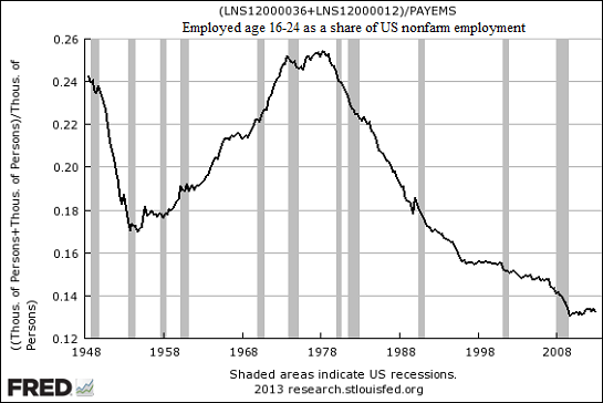 Here is the Bureau of Labor Statistics on the labor participation trend for the 16-24 age cohort: